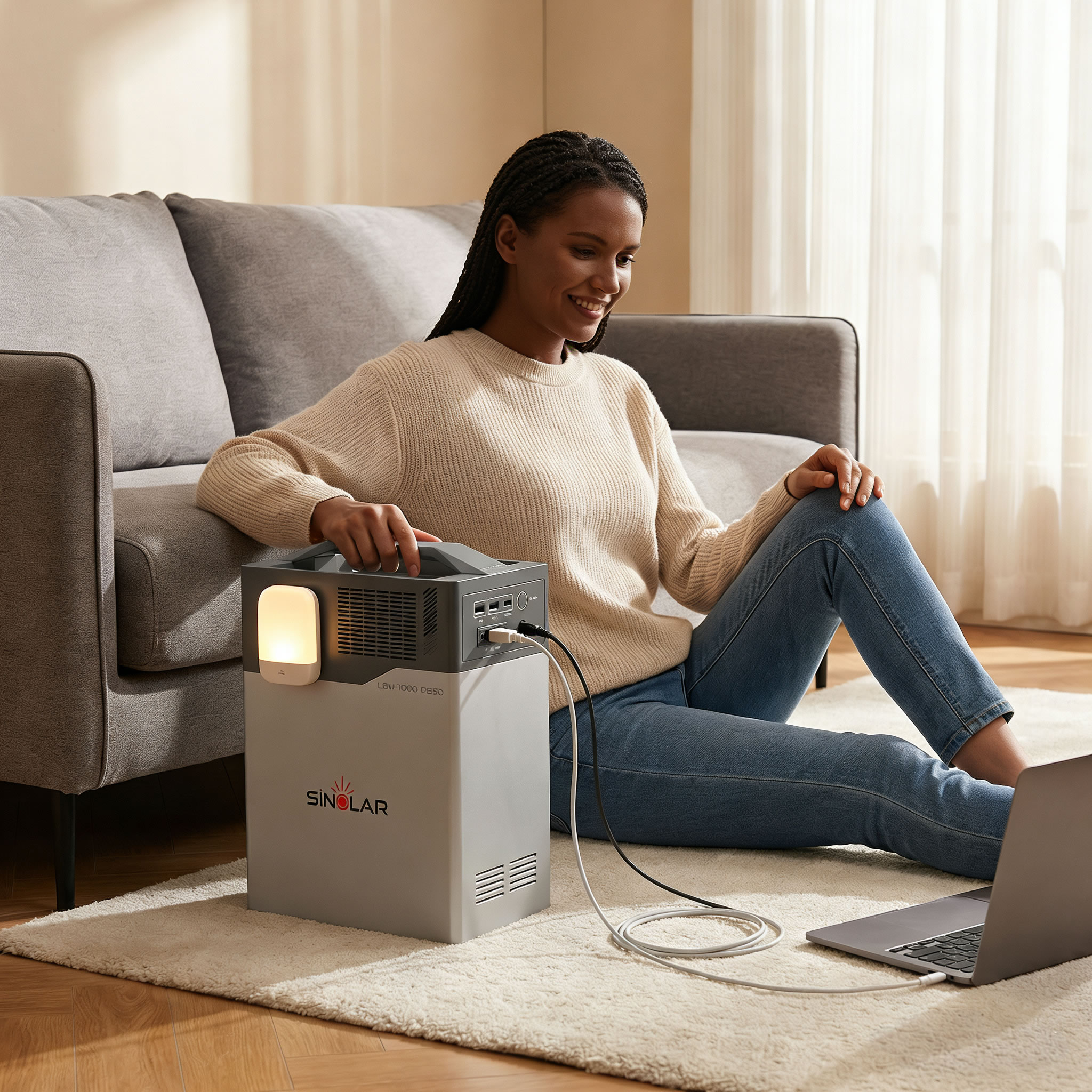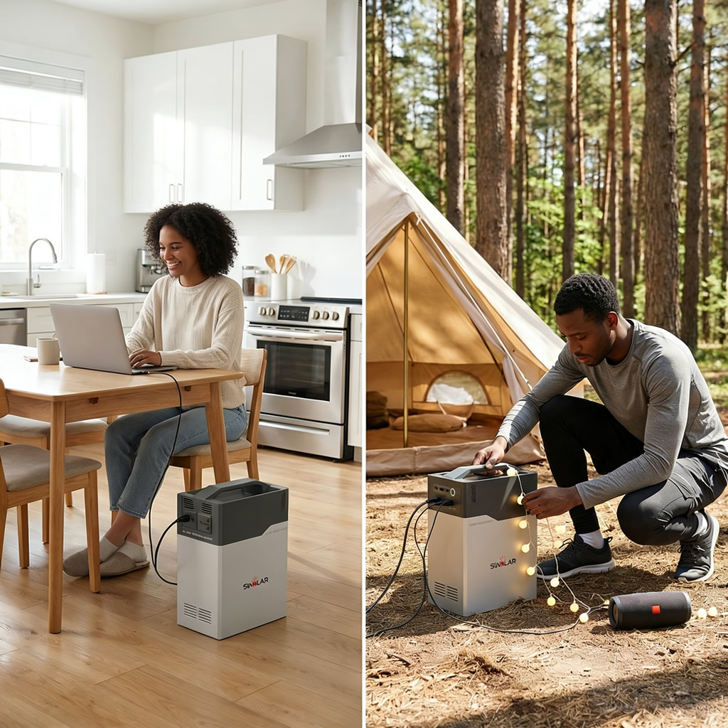Whisper-quiet operation (<40dB) compared to traditional generators (80-90dB)—no nighttime disturbance. Zero fuel costs, zero emissions, safe for indoor use. Weighing only 9.1kg, it's easily portable even for female users.